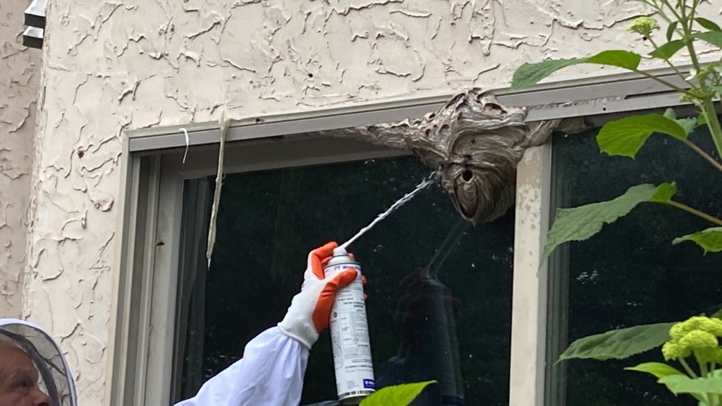 I have always enjoyed sneaking up and removing the nest without applying any products. This usually creates a huge rush and provides plenty of entertainment for customers watching odd shows. I like to observe wasps and study their behavior. Whenever we get them at our house, I convince the kids to let it be until winter. This argument usually loses steam quickly. They eventually convinced me we have to take into account the loss of playing territory and the risk of stings.